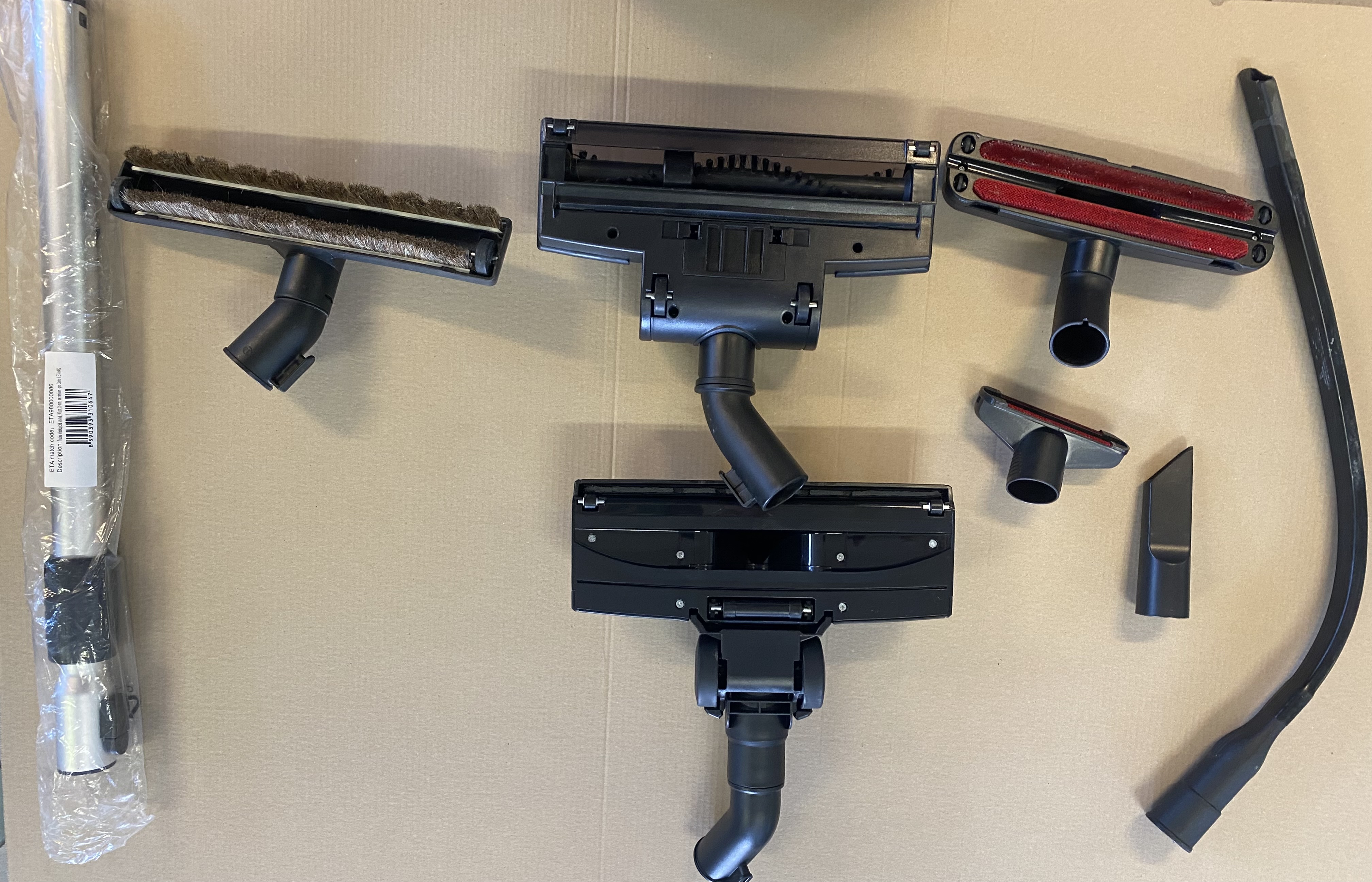 Při koupi vysavače Canto II Animal obdržíte univerzální podlahovou hubici pro pohodlné vysávání jak tvrdých podlah, tak i koberců. Dále získáte turbokartáč pro efektivnější vysávání koberců, který z nich posbírá jak vlasy, tak zvířecí srst. Parketová hubice se postará o tvrdé podlahy, jako jsou například parkety, plovoucí podlaha, dlažba nebo lino. Dále obdržíte kovovou teleskopickou trubku o délce až 90 cm, dlouhou štěrbinovou hubici pro vysávání v úzkých a velmi těžko přístupných místech, polštářovou hubici pro šetrné vysávání měkkých textilních povrchů jako je čalounění nebo polštáře. Součástí balení je také štěrbinová hubice pro vysávání úzkých a těžko přístupných míst například v žebrech radiátorů nebo za nábytkem, kartáček s jemnými štětinkami pomáhá při úklidu na místech, která potřebujete šetrně zbavit prachu nebo pavučin (například na nábytku, zdech či obrazech). Součástí balení je samozřejmě i prachový sáček ETA ANTIBACTERIAL.