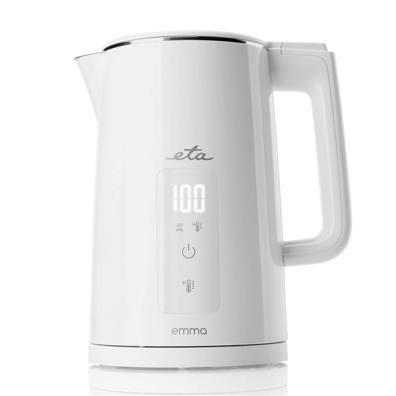 Designová konvice ETA Emma 5595 90010 s příkonem 2 200 W je nejen krásná, ale i praktická. Umožní vám totiž nastavit si přesně takovou teplotu, jakou zrovna potřebujete. Celkem můžete vybírat z 6 možností nastavení teploty (40 °C, 50–60 °C, 70 °C, 80 °C, 90 °C a 100 °C). Po dosažení požadované teploty konvice cinkne a automaticky se vypne.