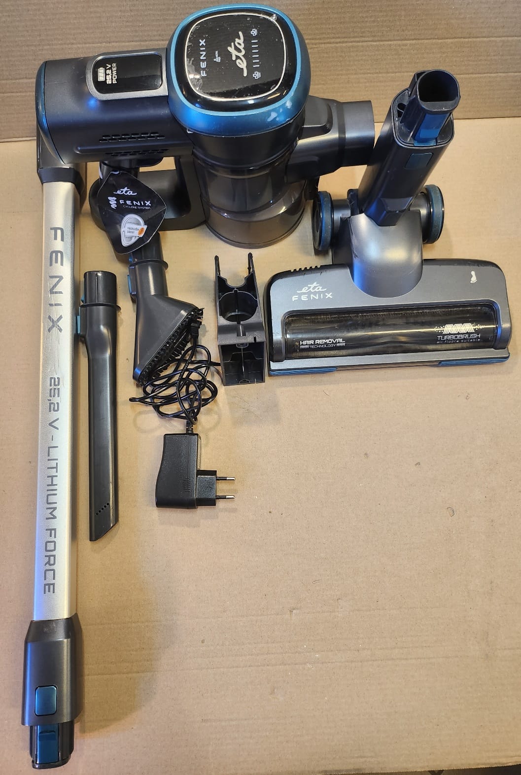 Podlahová hubice tyčového vysavače ETA Fenix je upravena tak, aby nedocházelo k namotávání vlasů a chlupů. Vestavěný hřeben je průběžně vyčesává, stahují se ke středu hubice a pak putují rovnou do prachové nádoby. Nečistoty se nebudou usazovat ani v pojezdových kolečkách hubice. Jsou větší než u běžných vysavačů a mají zvýšenou odolnost proti namotávání vlasů do ložisek. Rotační elektrický kartáč se bude hodit na vysávání parket a dalších tvrdých podlah. Je velmi šetrný a nehrozí tak poškrábání či poškození podlahy. Štěrbinovou hubici využijete pro úklid v úzkých a těžko přístupných místech a kartáček s jemnými štětinkami zase pro šetrné vysávání prachu či pavučin. V balení naleznete i nástěnný držák pro uskladnění vysavače a jeho příslušenství. A nechybí ani adaptér, čisticí nástroj s kartáčem a nožem a náhradní HEPA filtr.