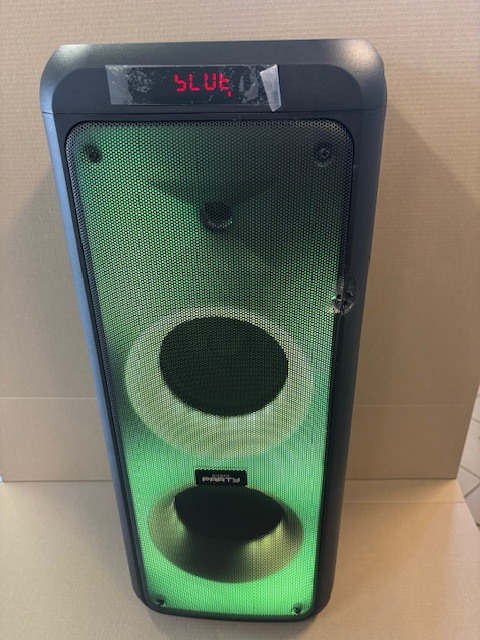 Party reproduktor • Výkon: 600 W • Bezdrátové připojení: Bluetooth • Rádio: ne • Odolnost: bez zvýšené odolnosti • Vstup AUX • USB • Napájení: síťové, vestavěný akumulátor • Rozměr (cm): 63 cm